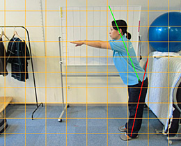 コンピューター分析により普段の訓練の効果を測定すると同時に姿勢の評価を行います。