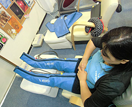 訓練のあいだに血流を良くするリラクゼーションを行います。