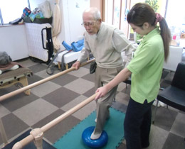 バランスパットやディスクを使用し体幹の訓練を行い立位バランスを安定させます。